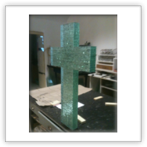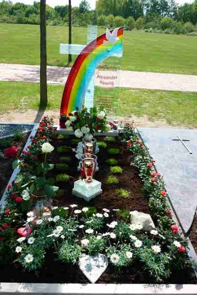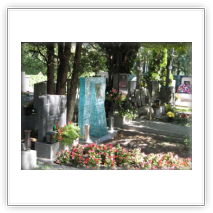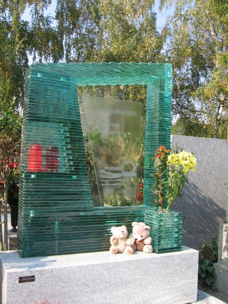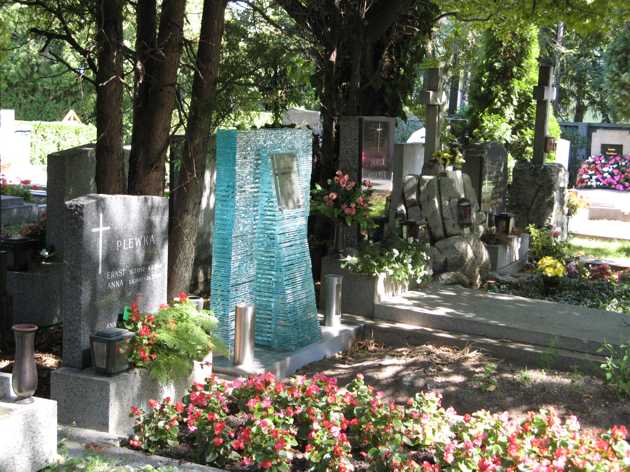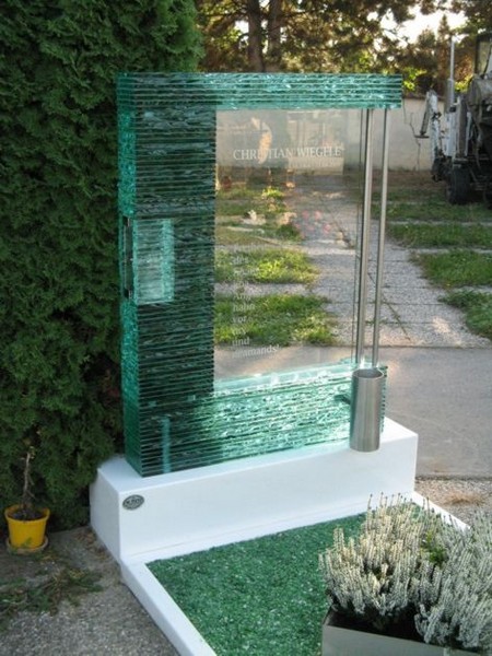 Grabsteine und Grabkreuze aus Glas.